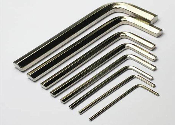 Stainless steel L-shaped wrench available in 6mm, 8mm, and 10mm sizes, manufactured from high-quality ANSI AISI 304/316 stainless steel. This flat head hex Allen key is designed for bolts and various hardware applications.